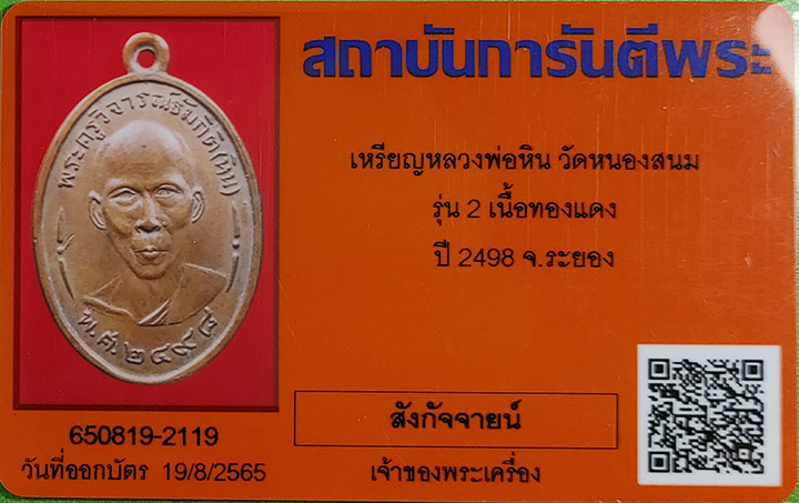 เหรียญหลวงพ่อหิน วัดหนองสนม ปี 2498 รุ่น2 จ.ระยอง