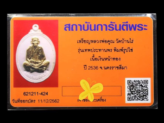 เหรียญหลวงพ่อคูณ รุ่นคุณพระเทพประทานพร เนื้อเงินหน้ากากทองคำ พ.ศ. 2536 หายากครับ พร้อมกล่องเดิมและ บัตรการันตีพระ