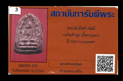 พระกรุวัดเจ้ามูล พิมพ์ข้างรัศมี (สีแดง) ปี2460 กรุ |