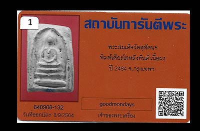 | สมเด็จอินโดจีน พิมพ์ไกเซอร์(เศียรโต) ปี2484 วัดสุท |