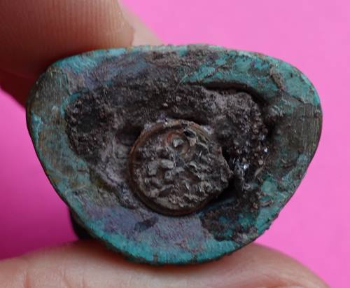 เนื้อสัมฤทธิ์ผิวสนิมเขียว ขนาดหน้าตัก 1 นิ้ว ใต้ฐานอุดผงวิเศษ ฝังเหรียญโค๊ด เลเซอร์โค๊ด+หมายเลข มองไม่ชัดดินติดอยู่ จำนวนสร้าง 4,999 องค์ รุ่นครอบเศียรพระลักษณ์หน้าทอง ปี 50 สีซองเดิม โทร. ID LINE 0825518499 (ตอง)