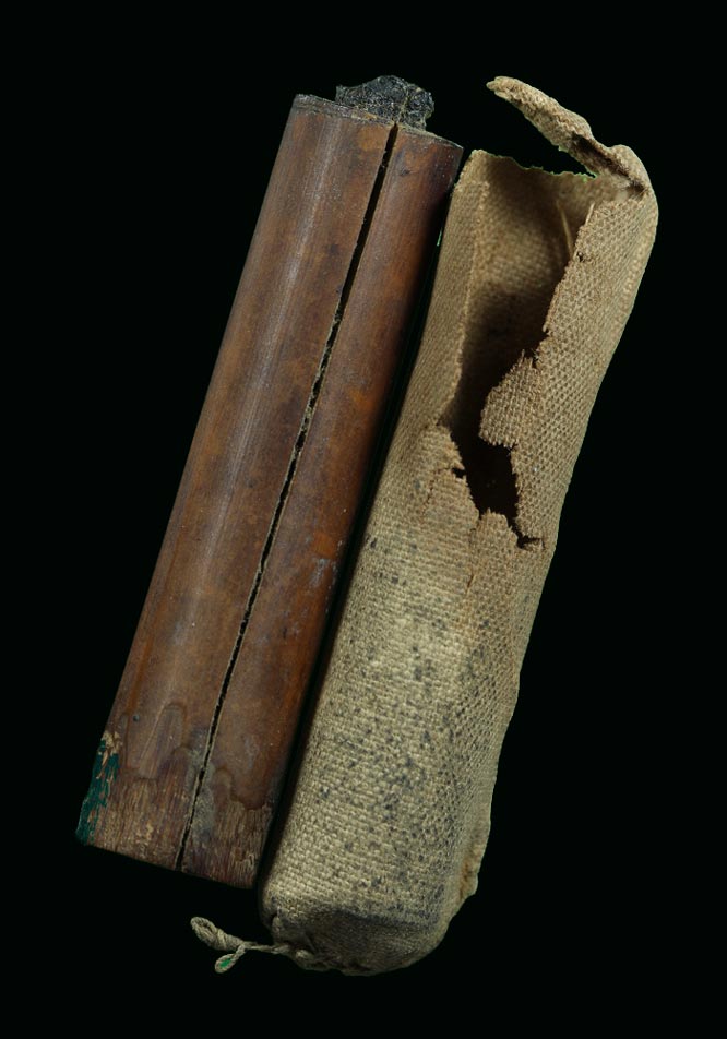 หลวงปู่จัน วัดนางหนู ผู้ทรงอาคมขลัง สุดยอดเกจิยุคสงครามโลก เจ้าของเหรียญหลักล้านเมืองลพบุรี ตะกรุดไม้ครู ขนาดยาว 2.5นิ้ว มาในถุงถักเก่า-สุดคลาสสิค เขย่าดังคลุกๆ