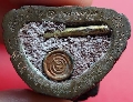 เนื้อนวโลหะขอมโบราณพันปี ผิวไฟ ใต้ฐานอุดผง ฝังเหรียญโค๊ดและตะกรุด ตอกโค๊ดและหมายเลข ๑๗๙๙ ผิวกลับดำ พิเศษมีรอยจาร (ลูกศิษย์จาร) จำนวนสร้าง ๒,๙๙๙ องค์ ถูกใจโทร.ID LINE 0825518499 (ตอง)