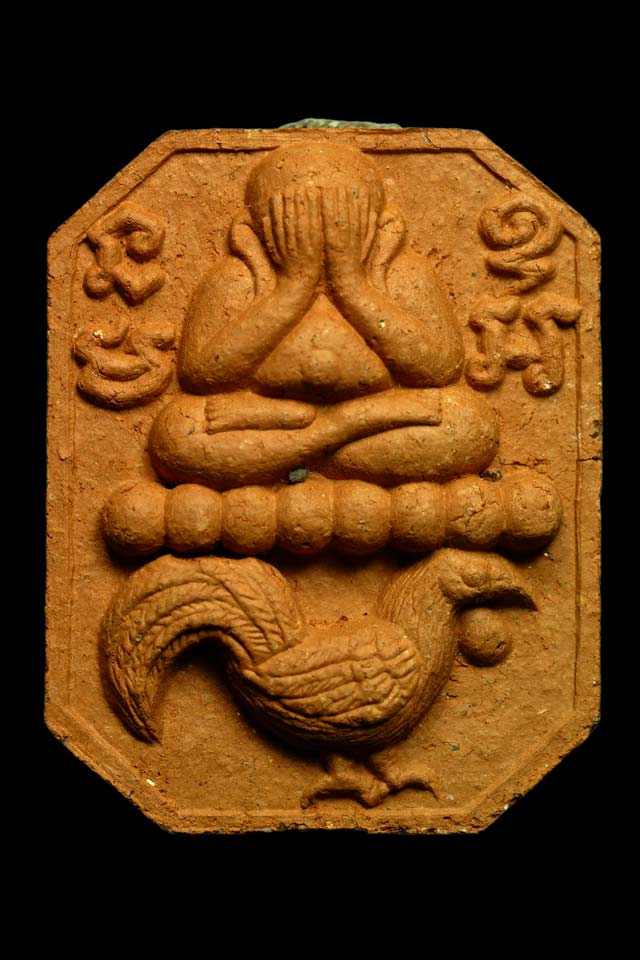 พระปิดตาขี่ไก่หลังยันต์เกาะเพชร รุ่นรวยทันใจ เนื้อดินเผา (ไม่มีกล่อง) หลวงปู่โสฬส วัดโคกอู่ทอง ปราจีนบุรี