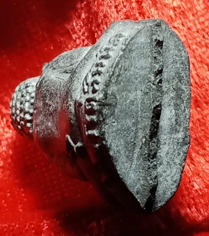 พระพิมพ์นี้พระเณรช่วยกันกดพิมพ์ขึ้นเองภายในวัด โดยหลวงปู่ปลุกเสกให้นานถึง 1 พรรษา ............องค์ที่นำลงในชมรมเป็นเนื้อผงใบลาน บรรจุตะกรุดเงิน 1 ดอกที่ใต้ฐาน เห็นนิ้วมือชัดเจนมากครบทั้ง10นิ้ว กดพิมพ์ชัดเจนมากจนเห็นเส้นที่โคนนิ้วมือ เม็ดพระศกคมชัดดูง่าย ใบหูติดเต็มทั้ง 2 ข้าง ตัวหนังสือชัดทั้งด้านหน้า ด้านหลัง มีเส้นเกศา ***รับประกันพระผิวเดิมไม่ผ่านการแขวนใช้บูชา มีนวลแป้งโรยพิมพ์เดิมๆทั่วองค์พระ ไม่มีอุดซ่อม หรือแต่งผิว