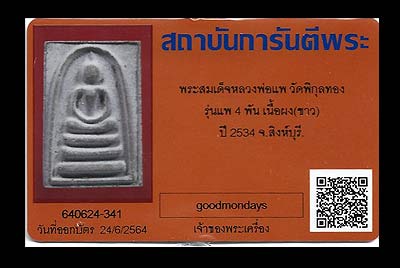 | สมเด็จแพ 4 พัน สีขาว ปี2534 หลวงพ่อแพ วัดพิ |