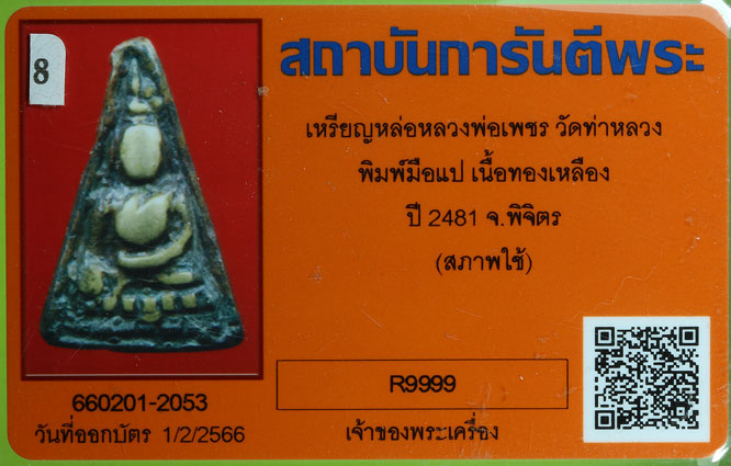 หลวงพ่อเพชร วัดท่าหลวง พิมพ์กำมือ-นิยม ปี 2481