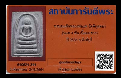 ชื่อพระ   สมเด็จแพ 4 พัน เนื้อผงเกสร ปี2534 หลวงพ่อแพ วัดพิก
