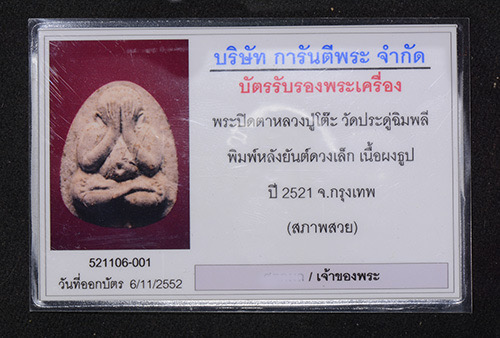 | พระปิดตารุ่นนี้หลวงปู่โต๊ะได้เมตตาปลุกเสกให้ถึง 3 ไตรมาส ปี 2521-2523 จำนวนการสร้าง: 1.เนื้อผงธูปกรรมฐาน จำนวนสร้างเพียง 2,000 องค์