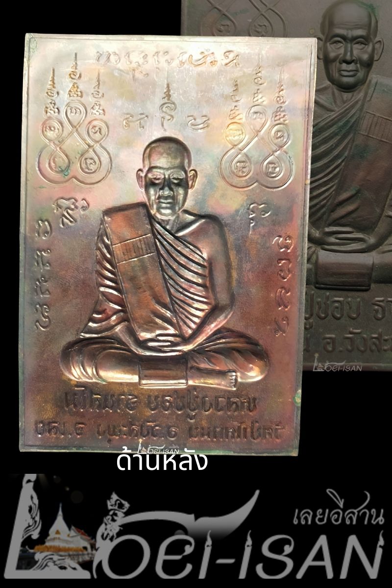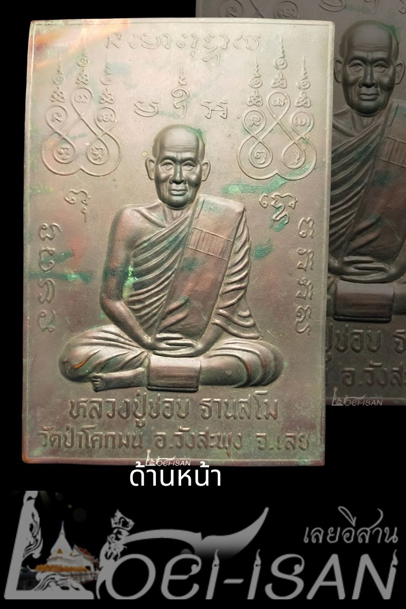 แผ่นปั๊มรูปเหมือน หลวงปู่ชอบ ฐานสโม เนื้อทองแดงรมดำ ปี36 สร้างในวาระครบรอบ 92 ปี 12 กุมภาพันธ์ หลวงปู่ชอบ ฐานสโม 2536.. จำนวนสร้าง 1,000 แผ่น..มีเนื้อทองแดงรมดำเนื้อเดียวเท่านั้น..รุ่นนี้หลวงปู่ชอบท่านสร้างเอง..วัตถุประสงค์ของท่านเพื่อจะให้ลูกศิษย์เอาไว้ติดบ้าน ติดรถยนต์ เป็นมงคลแคล้วคลาด.. ออกจากวัดป่าโคกมนไม่มีค่านิยม หลวงปู่ชอบท่านจะแจกลูกศิษย์ด้วยมือของท่านเอง.. แผ่นปั๊มรุ่นแรกหลวงปู่ชอบอธิฐานจิตเดี่ยวทั้งพรรษาปี 2536 ก่อนที่ท่านจะแจกลูกศิษย์ แม่พิมพ์แผ่นปั๊มรุ่นแรกหลวงปู่ชอบท่านให้นำมาเป็นชนวนหล่อ " พระกริ่งฐานสโม " กับ " พระชัยวัฒน์ฐานสโม " วัดท่าแขก อ.เชียงคาน 1 สิงหาคม 2536.. ขอขอบคุณข้อมูลการสร้างจากคุณวีระศักดิ์ โพธิสัตย์ (อาจารย์กล้วย) มา ณ ที่นี้ด้วยครับ