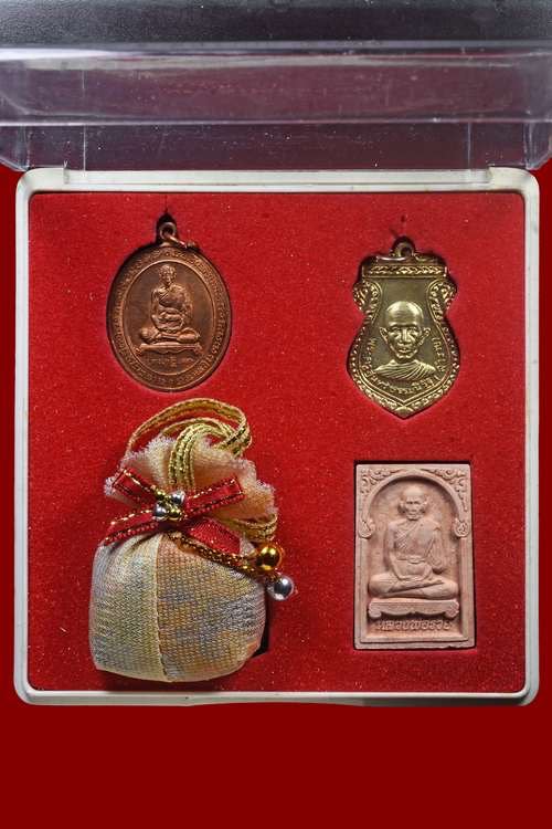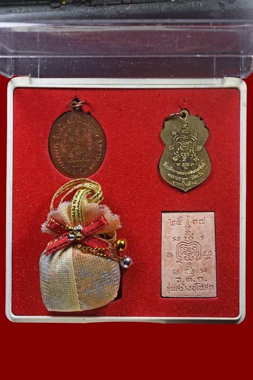 ชุดของขวัญ หลวงพ่อรวย วัดตะโก ( พิธีพระราชทานไตรพระราชทานในพิธีแสดงมุทิตาสักการะ ) รุ่นเทพประทานพร ( เงินไหลทอง ทองไหลมา ) ปี2546 พร้อมกล่องเดิม (หายาก) ทุกรายการ รับประกันพระแท้ ร้านรวยสมปรารถนา โทร 0941597456 คุณวีราภรณ์ โกมลนิมิ