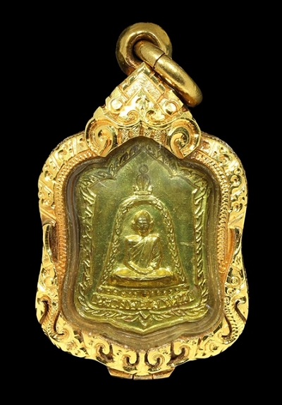 | เหรียญแจกทาน สร้างในปี พ.ศ.2515 โดยคณะกรรมการวัด เพื่อหารายได้สมทบทุนการก่อสร้างศาลาการเปรียญ คณะกรรมการได้นำเหรียญถวายหลวงพ่อจำนวน 3,000 เหรียญ มี2พิมพ์ คือ พิมพ์สังฆาฏิสั้น และ พิมพ์สังฆาฏิยาว โดยสังเกตที่เส้นสังฆาฏิ สำหรับด้านหลังยังคงมีพิมพ์เดียว องค์นี้เนื้อทองเหลืองกะไหล่ทองสวยคมเดิมๆครับ มาพร้อมบัตรรับรอง"สภาพสวย"จากการันตีพระ |