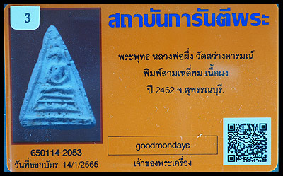 พระผงพิมพ์สามเหลี่ยม ปี2462 หลวงพ่อผึ่ง วัดสว่างอา |