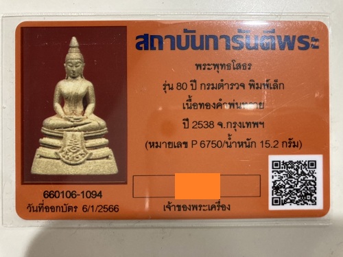 หลวงพ่อโสธร กรมตำรวจ80ปีทองคำพ่นทรายพิมพ์เล็ก