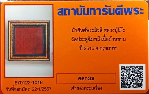 ผ้ายันต์พระสิวลี หลวงปู่โต๊ะ สีแดง(สภาพสวยมาก)