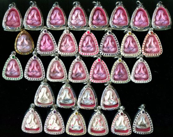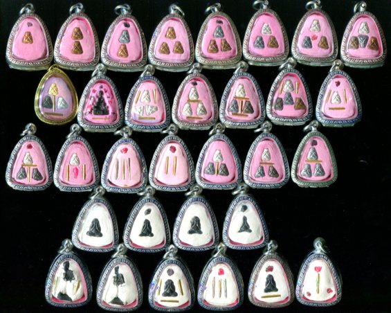 1 - เนื้อชมพู ตะกรุดทองคำ 14 พิมพ์ 200 องค์ 2 - เนื้อขมพู ปิดตาสาริกา 8 พิมพ์ 565 องค์ 3 - เนื้อขาว พิมพ์พิเศษ 6 พิมพ์ 89 องค์ ( รายการที่ให้หลวงพ่อเซนต์ ผมพิมพ์ผิดครับ พิมพ์แค่ 19 องค์ พระจริงสร้าง 89 องค์ ตามรายละเอียดแนบครับ) 4 - เนื้อขาว หลังปิดตา ปี37 มี 4 พิมพ์ 446 พิมพ์ รวมเนื้อชมพู กับเนื้อขาว ทั้งหมด 1,300 องค์ 5 - ชุดลองพิมพ์ ส้รางแจก 265 องค์ เป็นตะกรุดทองคำ หลาลแบบ หลายเนื้อ 65 องค์ ตะกรุดเงินและทองแดง 100 องค์ ไม่ฝังตะกรุด 100 องค์