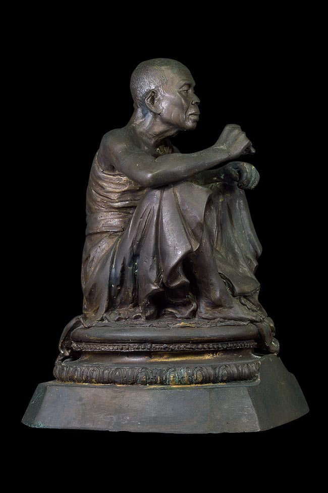 | พระบูชารูปเหมือนนั่งพื้นชันเข่า เท้าซ้ายทับเท้าขวา ( 5 นิ้ว ) พระญาณวิทยาคมคูณพันล้าน หลวงพ่อคูณ ปริสุทฺโธ วัดบ้านไร่ รุ่น ฉลองอุโบสถ วัดหนองหมูใต้อ.วิหารแดง จ.สระบุรี ( เนื้อโลหะ ) พ.ศ.2536