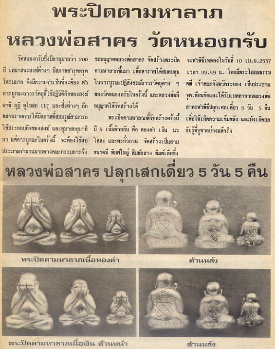พ่อสาคร37 ปิดตาเนื้อตะกั่ว พิมพ์กลาง ปี 2537 องค์