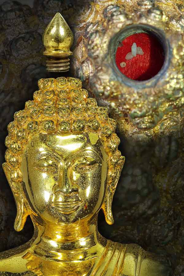 | พระบูชาพระพุทธมหามงคลมิ่งโมลี ( รุ่นแรก ) หลวงพ่อคูณ ปริสุทโธ วัดบ้านไร่ ปลุกเสก วัดใหม่พิเรนทร์ บางกอกใหญ่ กรุงเทพมหานคร จัดสร้าง พ.ศ.๒๕๒๐ หน้าตัก ๙นิ้ว , เนื้อโลหะกะไหล่ทอง , พระเกศมีเกลียวหมุนเปิดได้ , บรรจุพระบรมสารีริกธาตุ |