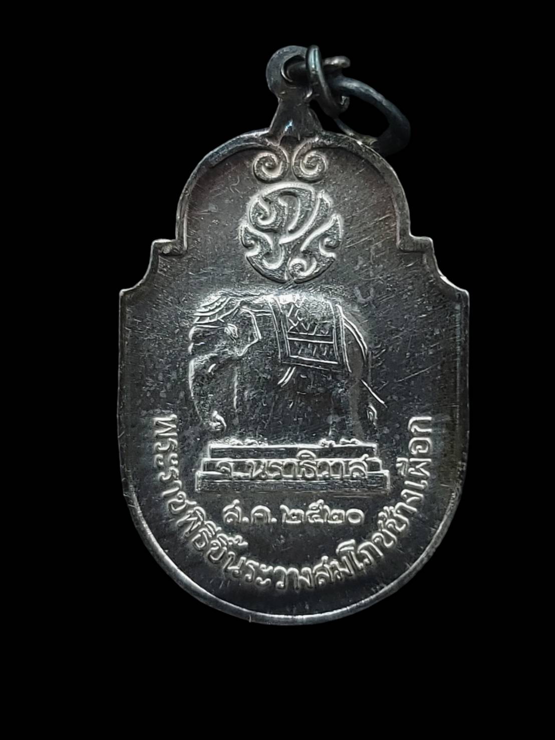 เหรียญพระราชพิธีขึ้นระวางสมโภชช้างเผือก จ.นราธิวาส ปี2520 เนื้อเงิน มีตกแต่งผิวด้านหน้าให้สวยงาม ขอบเหรียญมีสภาพผิวเงินสัมผัสอากาศ
