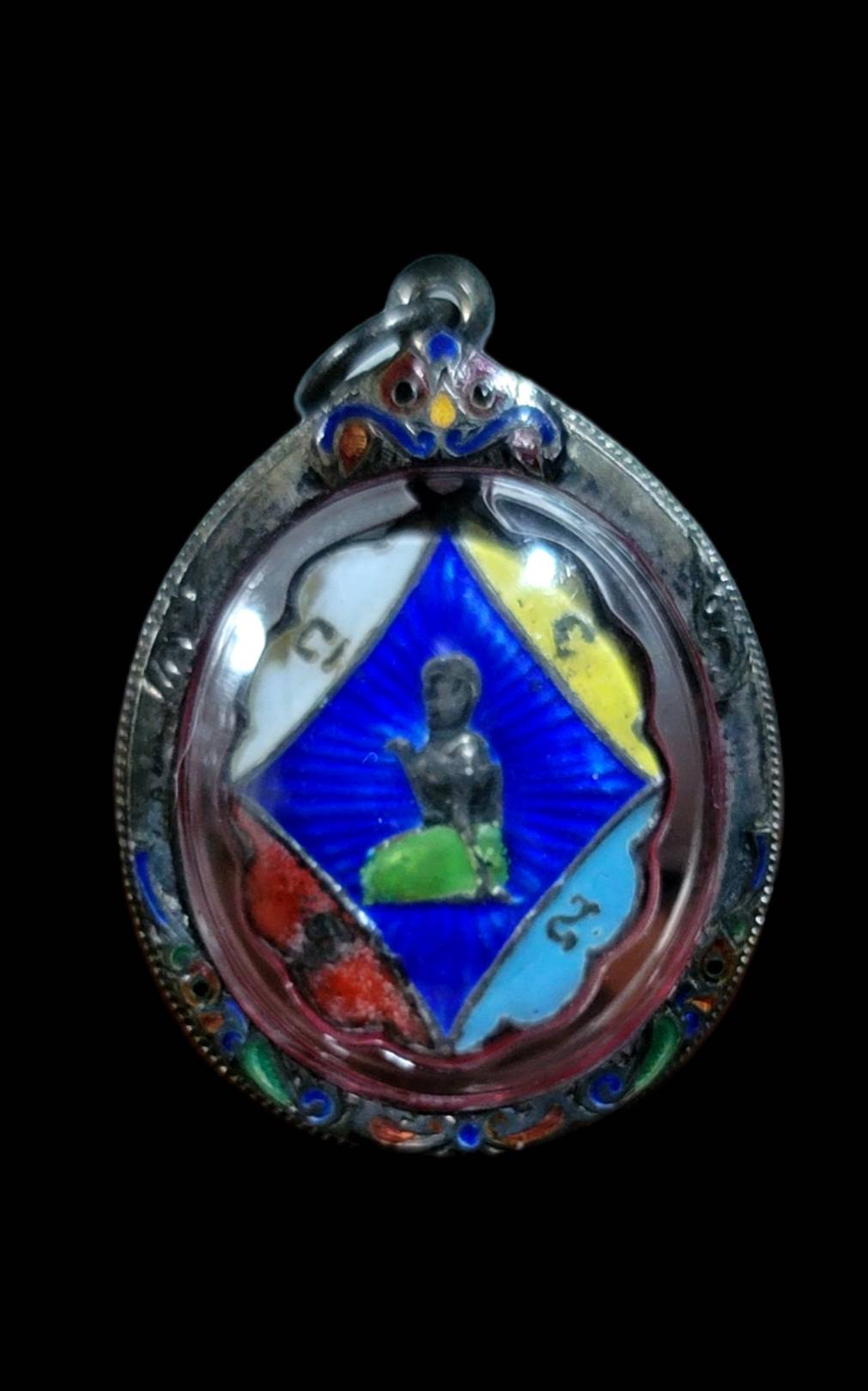 เหรียญนางกวักเนื้อเงินลงยา หลวงพ่อแจ๋ วัดโพธิ์เฉลิมรักษ์ จ.ฉะเชิงเทรา หายาก เลี่ยมพร้อมใช้