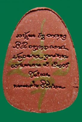 พระผงนั่งเมฆหลวงปู่พระมหาศิลา เลื่อนยศ สภาพสวย เนื้อชานหมากพร้อมรอยจารหมึกทอง ด้านหน้าและด้านหลัง ติดเกษา+จีวร พร้อมบัตรการันตี