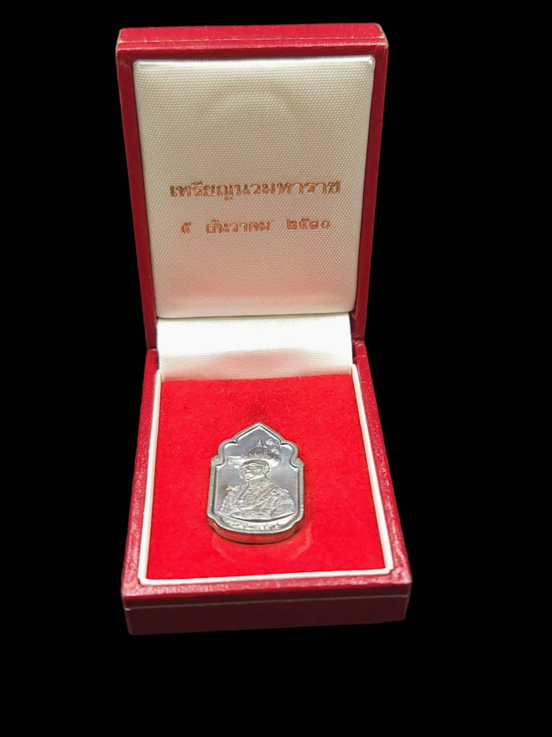 เหรียญ นวมหาราช เนื้อเงิน ฉลอง 5 รอบ ในหลวง ปี 2530 พุทธาภิเษกวัดพระแก้ว พิธีใหญ่