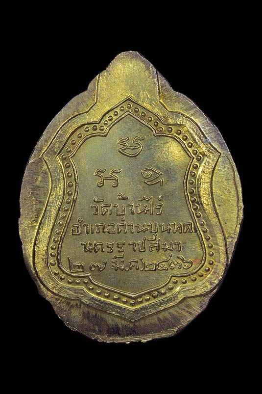 เหรียญ รุ่น แป๊ะขนมปัง ( เนื้อทองฝาบาตร ไม่ตัดปีก ) พ.ศ.2536 / ผู้จัดสร้าง เฮียแป๊ะ ( เจ้าของโรงงานขนมปัง ) / วัตถุประสงค์ เพื่อแจกทาน และ นำรายได้สมทบทุนสร้างโรงพยาบาลด่านขุนทด อ.ด่ายขุนทด จ.นครราชสีมา / พิธีพทธาภิเษก เสาร์ห้า วันที่ 27 มีนาคม 2536 / รายการจัดสร้าง 1.เหรียญไม่ตัดปีก ( กรรมการ ) 17 เหรียญ 2.เหรียญไม่เจาะหู 150 เหรียญ / เหรียญเจาะหู 10500 เหรียญ / ความหมายในเหรียญ การตอกโค้ดเลข ๗ ทุกเหรียญ หมายถึง ดีทุกวันทั้ง7วัน ( วันจันทร์ถึงวัดอาทิตย์ ) ข้างใต้ที่หลวงพ่อคูณนั่งมีจุดไข่ปลา 8 จุด หมายถึง มรรคมีองค์แปด คือหนทางดับทุกข์นั่นเอง