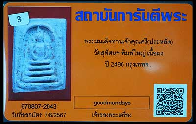 สมเด็จพิมพ์ใหญ่ เจ้าคุณศรีประหยัด ปี2496 วัดสุทัศน |