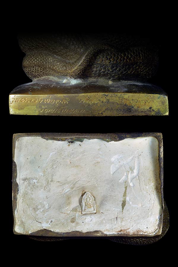 | พระบูชาพระพุทธวชิรมงคล ( นาคปรก ) หลวงพ่อคูณ ปริสุทฺโธ วัดบ้านไร่ ปลุกเสก พ.ศ.2537 / รายละเอียด : ขนาดฐาน 5 นิ้ว , ลึก 3.5 นิ้ว , สูง 12 นิ้ว / ใต้ฐานบรรจุพระผงนาคปรก สร้างเมื่อปี พ.ศ.2519 ( ปลุกเสกพิธีใหญ่ ) / ผู้จัดสร้าง : พระครูสิรินนทคุณ เจ้าอาวาสวัดพลับพลา / ปลุกเสก : ณ วัดโพธิ์งาน อ.ชัยบาล จ.ลพบุรี วันที่ 21 เมษายน พ.ศ.2537 ในงานวางศิลาฤกษ์ ศาลาการเปรียญ วัดโพธิ์งาม / ช่างปั้น : อาจารย์แก้ว หนองบัว ได้ถอดแบบ พระพุทธวชิรมงคล ( นาคปรก) หินศิลาแดง สมัยลพบุรี ประจำอยู่ที่วัดพลับพลา มานานกว่า 200 ปี / จัดสร้าง 2 ผิว ลงรักปิดทอง , ผิวรม รวมจำนวน 900 องค์ |
