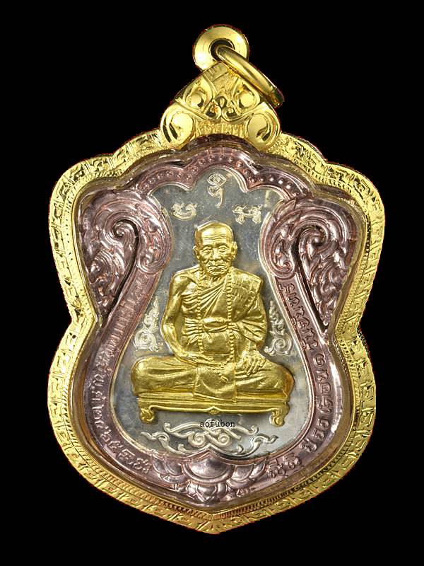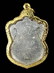 เหรียญเสมาเพชรกลับทรัพย์ทวี หลวงปู่คำบุ วัดกุดชมภู เนื้อสามกษัติย์ หมายเลข6 พร้อมเลี่ยมทอง