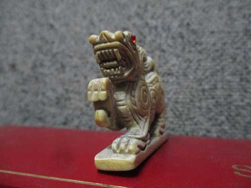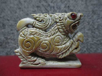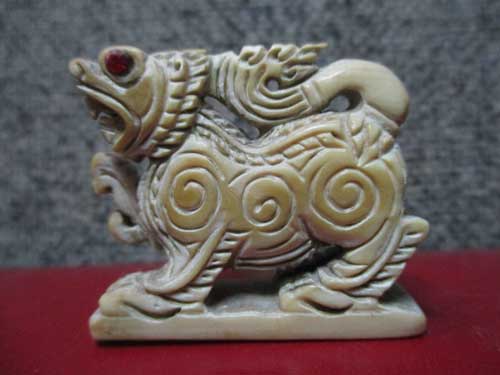 สิงห์หลวงพ่อเดิม วัดหนองโพ เนื้องาแกะ ยกขาตาพลอยแดงศิลป์ช่างพยุหคีรีสวยเก่า ขนาดฐานยาว 4 ซม. สูง 3.5 ซม. ใต้ฐานมีจาร นะ มะ พะ ทะ