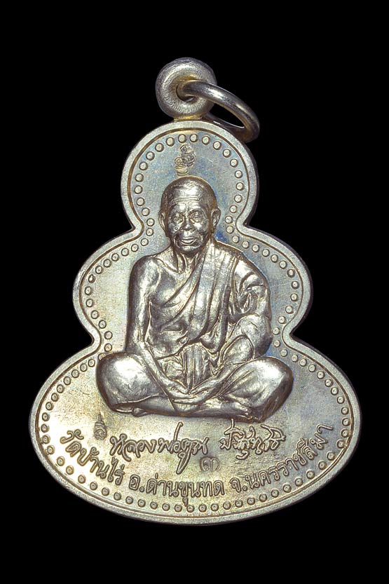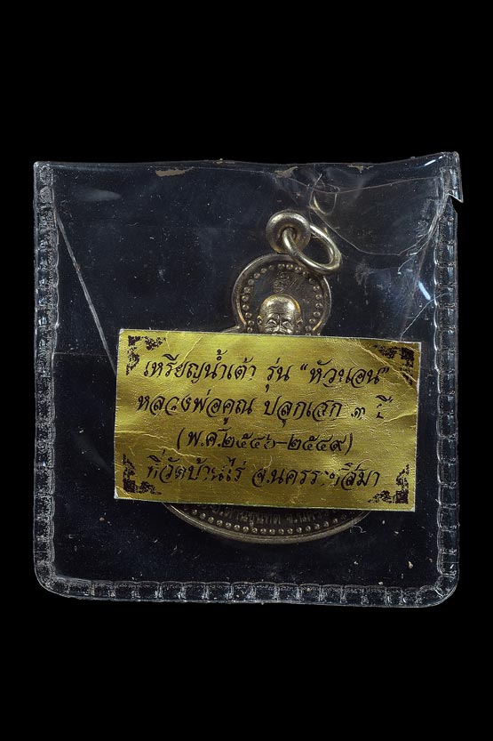 | เหรียญน้ำเต้า รวย ดี มี สุข หลวงพ่อคูณ ปริสุทฺโธ วัดบ้านไร่ รุ่น หัวนอน ( เนื้ออัลปาก้า ) พ.ศ.2546 ( มีซองใส่ติดสติ๊กเกอร์ชื่อรุ่น , ตอก 4 โค้ด , โค้ดนะมหาเศรษฐี , โค้ดเลข ๓ ไทย 3 โค้ด ) / ปลุกเสก วาระที่ 1 : ก่อนที่จะนำเหรียญให้ หลวงพ่อคูณ ปลุกเสก ทางคณะผู้จัดสร้าง และ คุณ กฤษณะ ละไล ได้นำเหรียญทั้งหมดไปให้เกจิปลุกเสกดังนี้ ( 1 )หลวงพ่อเพิ่ม วัดป้อมแก้ว , ( 2 )หลวงพ่อรวย วัดตะโก จ.พระนครศรีอยุธยา , ( 3 )หลวงปู่เสาร์ วัดกุดเวียง จ.นครราชสีมา / ปลุกเสก วาระที่ 2 : หลวงพ่อคูณ ปลุกเสกเดี่ยว หน้าโต๊ะหมู่บูชา พระอาจารย์คง บนกุฏิ หลวงพ่อคูณ รวมทุกเนื้อ จัดสร้าง 11999 เหรียญ ปลุกเสก 2 วาระ ได้นำเหรียญออกจำนวน 2000 เหรียญ เพื่อไปแจกฟรี พร้อมหนังสือประวัติ หลวงพ่อคูณ โดยสำนักพิมพ์เนชั่นบุ๊คส์ ที่เหลืออีก 9999 เหรียญ ฝากหลวงพ่อเสก วาระ 3 ( 3 ไตรมาส ) / ปลุกเสก วาระที่ 3 : ฝากไว้ให้ 9999 เหรียญทุกเนื้อ หลวงพ่อคูณ ปลุกเสก อธิษฐานจิตต่ออีก 3 ไตรมาส ทีแรก หลวงพ่อคูณ ไว้ข้างเตียงและสวดมนต์ภาวนาทุกเช้ามืดต่อมา หลวงพ่อคูณ นำกล่องทั้งหมดไปวางไว้ตรงหัวนอนของท่านรวมเวลา 3 ปี / รายการ 1.เนื้อทองคำ สร้าง 9 เหรียญ , ( ไม่ตัดปีก 1 เหรียญ 2.เนื้อเงิน 100 เหรียญ , 3.เนื้อนวะโลหะ 50 เหรียญ , 4.เนื้ออัลปาก้า 840 เหรียญ , 5.เนื้อตะกั่ว 1000 เหรียญ , 6.ทองแดง 10000 เหรียญ ( แถมพร้อมหนังสือก่อนเข้าปลุกเสก 3 ปี 2000 เหรียญ / เข้าปลุกเสก 3 ปี 8000 เหรียญ ) |