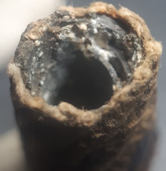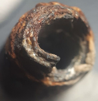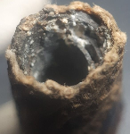 ตะกรุดสาริกาแกนชินตะกั่วถักเชือกปอกลิ้งผงลงรักตัดแบ่ง หลวงปู่เอี่ยม วัดหนัง ยาว 1.7 ซม. โต 0.7 ซม.(เท่าหลอดกาแฟ) เลี่ยมกันน้ำ 3 ห่วง