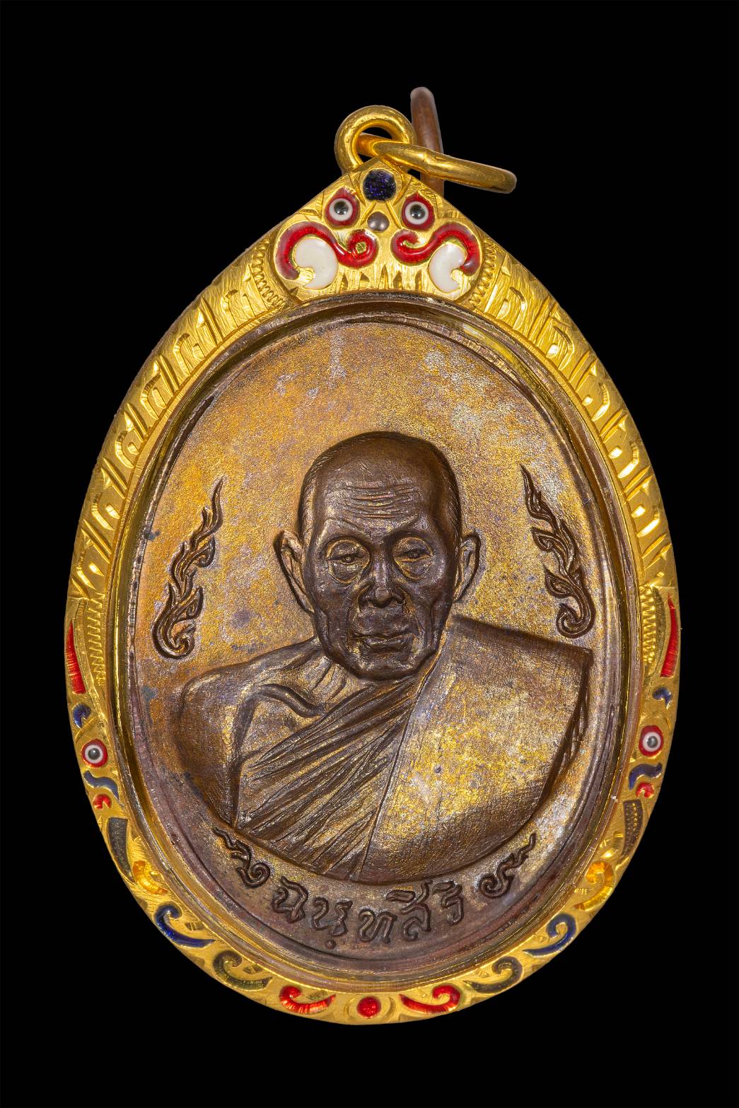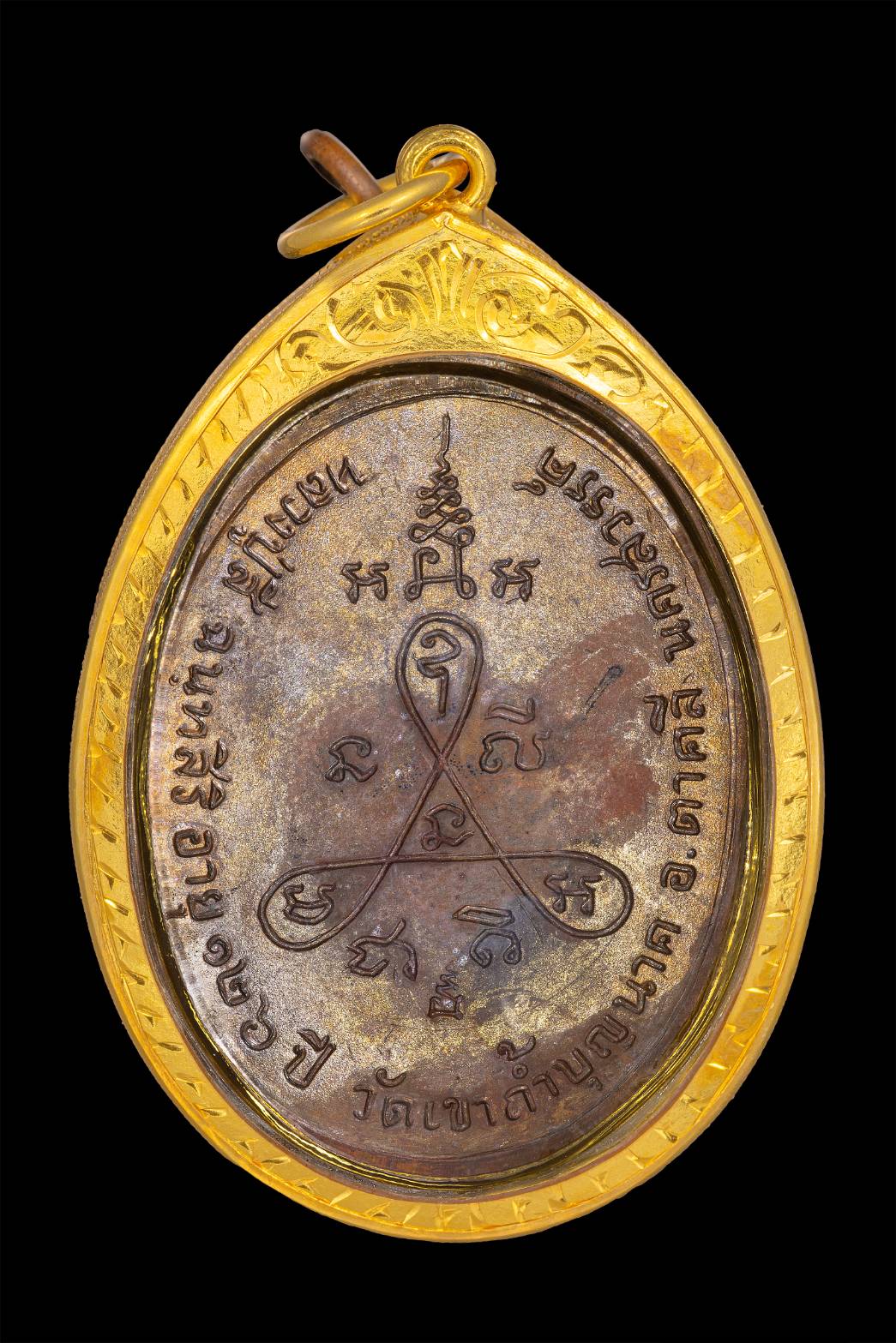 เหรียญกนกข้างหลวงปู่สีวัดเขาถ้ำบุญนาคเนื้อทองแดงเลี่ยมทองพร้อมใช้ตอกโค๊ตชัดเจน
