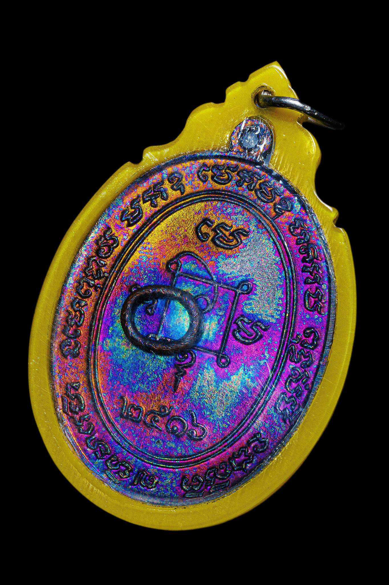 เหรียญนี้จัดเป็นเหรียญที่ผิวสวยมาก รุ้ง หน้า-หลังเหรียญ มาพร้อมเลี่ยมโบราณสุดคลาสสิก
