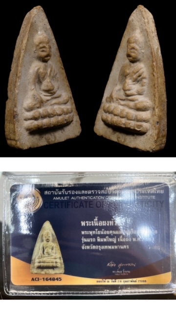 พระพุทโธน้อยคุณแม่บุญเรือนรุ่นแรกปี พ.ศ.2494พิมพ์ใหญ่ติ่งใต้บัว เนื้อผงพุทธคุณ วัดอาวุธฯ กรุงเทพฯ พิมพ์นี้ถือว่าเป็นพิมพ์ที่ได้รับความนิยมและหาค่อนข้างหายาก องค์นี้ฟอร์มพระลึกดีได้หนาปีกกว้างหน้าตาติดชัดเนื้อจัด จมูกโด่งเป็นสัน แก่ผงพุทธคุณ ระดับประกวด ล่าสุดติดรางวัลที่ 3 งานใหญ่ระดับประเทศสมาคมฯดำเนินการจัดเอง ของป๋าพยัพ คำพันธุ์ พระส่งเยอะมากๆถ้าไม่สวยจริงไม่มีทางติดรางวัลแน่นอนครับ เมตตา แคล้วคลาด.รักษาโรค ..ประกันพระแท้..สนใจสอบถาม.