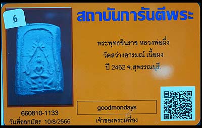 | พระผงพิมพ์ชินราช ปี2462 หลวงพ่อผึ่ง วัดสว่างอารมณ์ |