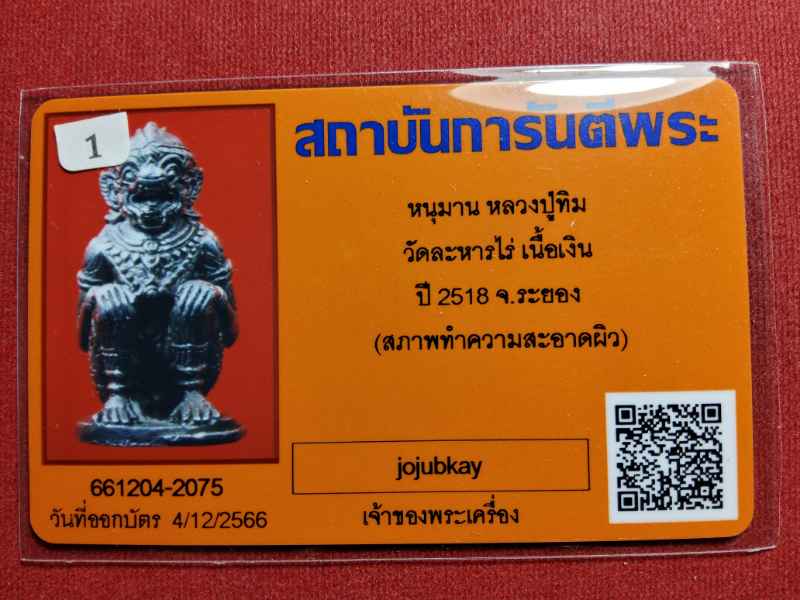 หนุมานหลวงปู่ทิม วัดละหารไร่ ปี2518 จ.ระยอง เนื้อเ