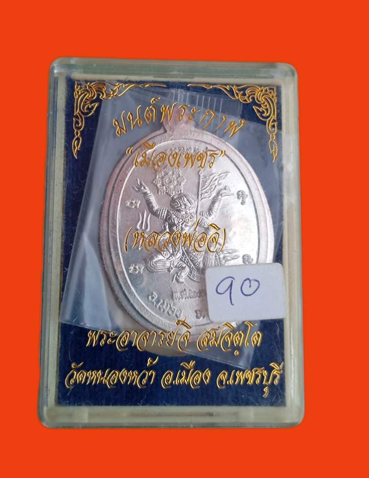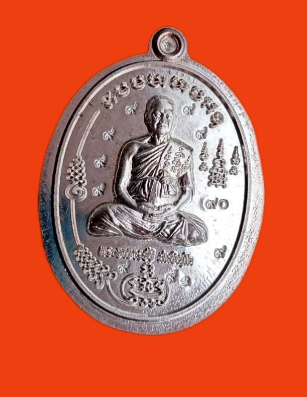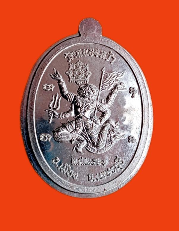 | เหรียญมนต์พระกาฬ เนื้อเงินไม่ตัดปีก ตอกเลข๙ล้อม พระอาจารย์จิ วัดหนองหว้า ปี 2561 จัดสร้าง 99 เหรียญ |