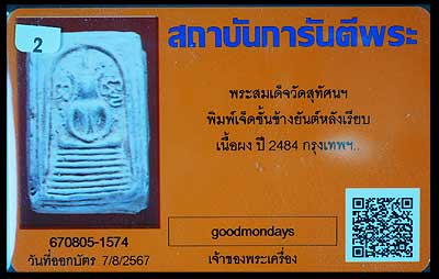 สมเด็จอินโดจีน พิมพ์แซยิด7ชั้น ข้างยันต์ ปี2484 วั |