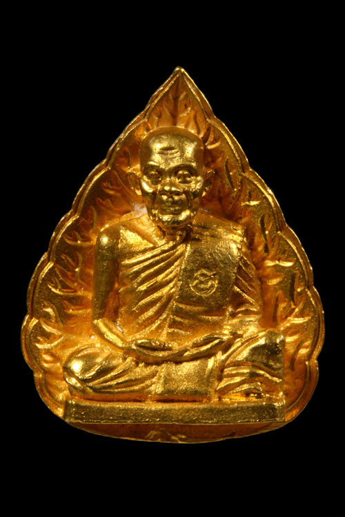 พระรูปเหมือนใบโพธิ์ หลวงปู่ชอบ เนื้อทองคำ91%