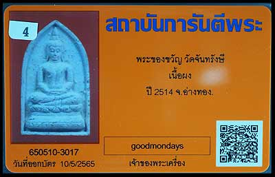 พระผงของขวัญ ปี2514 วัดจันทรังษี อ่างทอง |