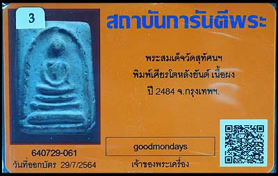 | สมเด็จอินโดจีน พิมพ์เศียรโต หลังยันต์ ปี2484 วัดสุ |