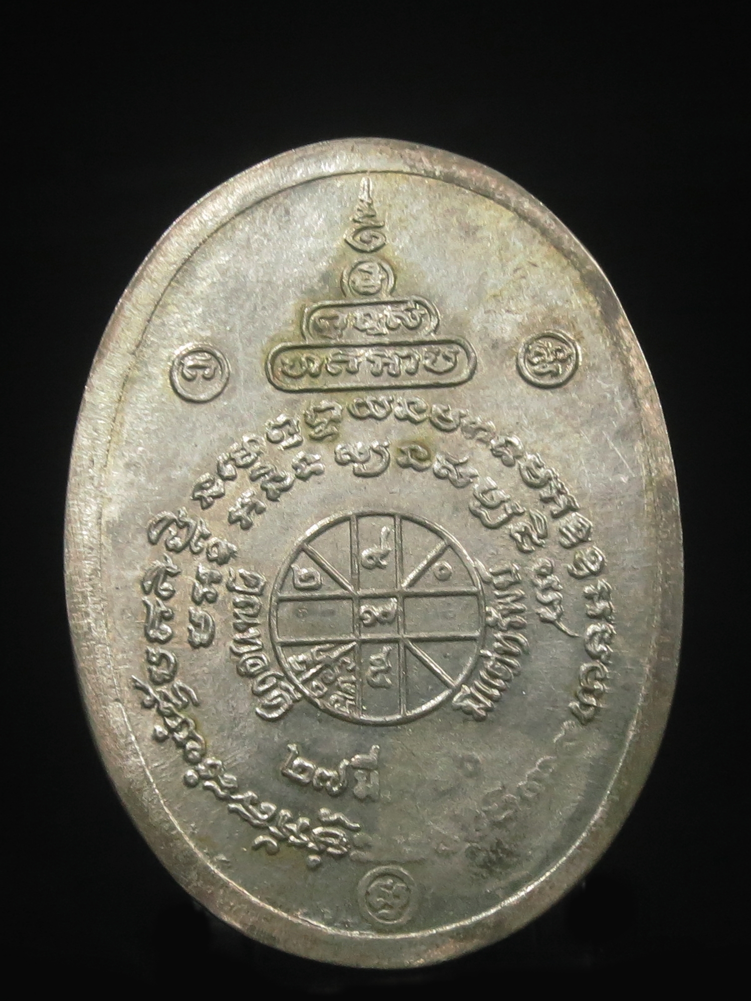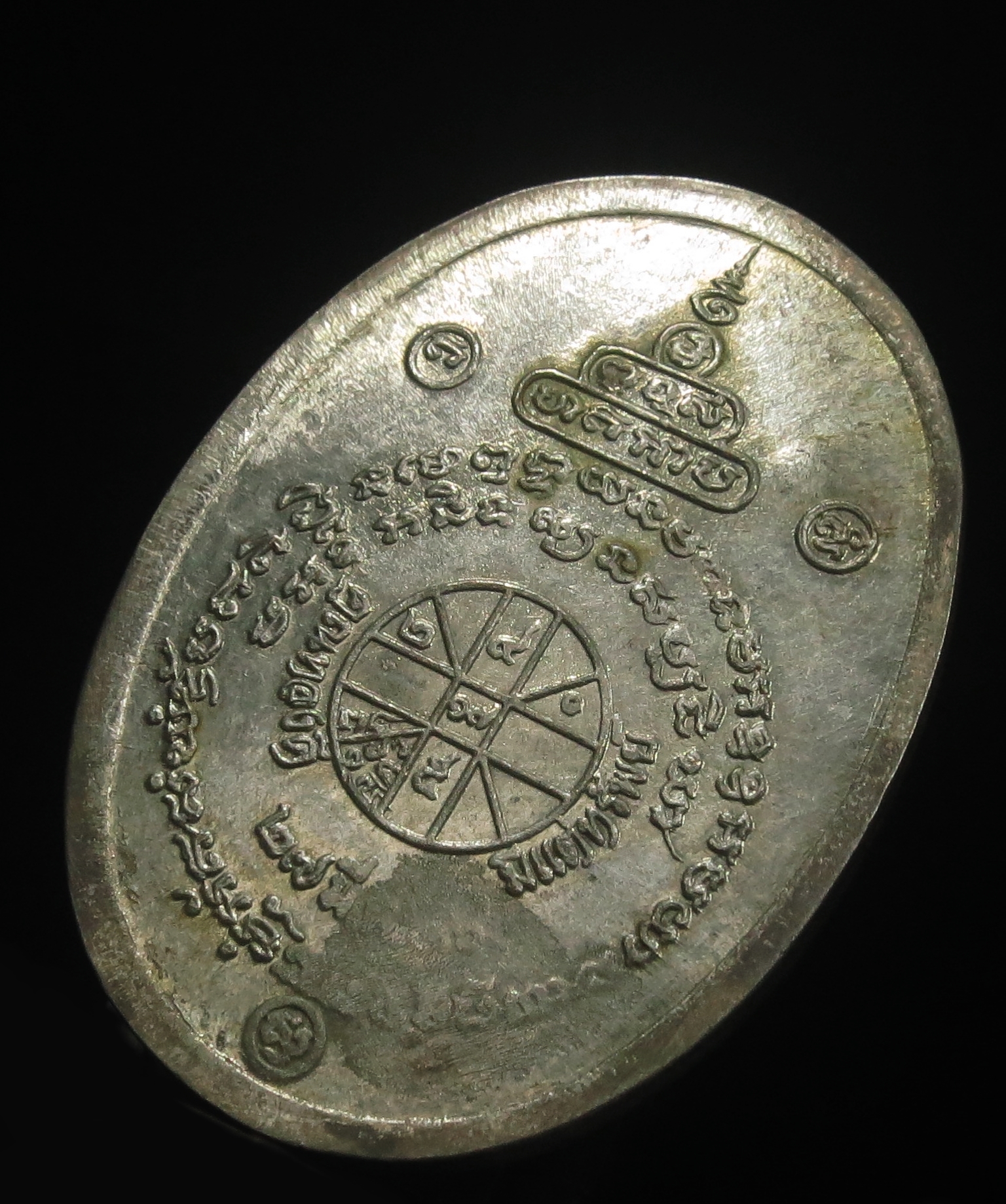 เนื้อนวะแก่เงิน มีจารที่หน้าเหรียญ