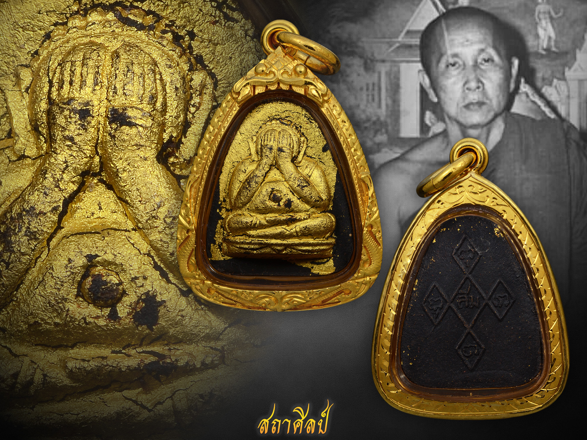 พระปิดตาเมตตาเนื้อผงคลุกรักปิดทอง ปี2517 สร้างพร้อ