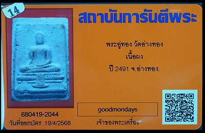 | พระอู่ทอง ปี2491 วัดอ่างทอง จ.อ่างทอง |