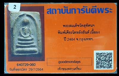 | สมเด็จอินโดจีน พิมพ์เศียรโต หลังยันต์ ปี2484 วัดสุ |