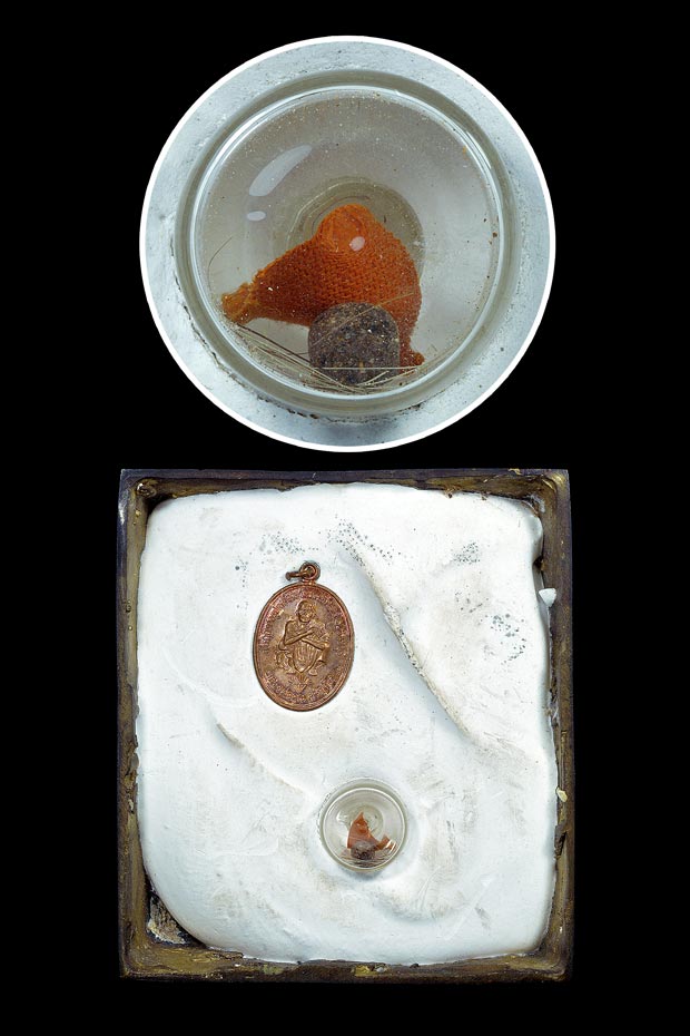 | พระบูชารูปเหมือนนั่งยอง 5 นิ้ว ( เนื้อโลหะรมน้ำตาล ) วัดนครอินทร์ จ.นนทบุรี พ.ศ.2539 จัดสร้าง 200 องค์ ใต้ฐานฝังเหรียญ รุ่น บารมีธรรม เนื้อทองแดงผิวไฟ , ฝังขวดแก้วบรรจุเกศาหลวงพ่อคูณ-จีวรหลวงพ่อคูณ-เม็คแร่บางไผ่ จารยันต์อักขระลายมือพระอาจารย์สมศักดิ์ / ผู้จัดสร้าง พระอาจารย์สมศักดิ์ ฐิตสกฺโข วัดนครอินทร์ ต.สวนใหญ่ อ.เมือง จ.นนทบุรี / วัตถุประสงค์ ที่รฤกหล่อรูปเหมือนหลวงพ่อคูณเท่าองค์จริง จำนวน 1 องค์ และ ขนาด 5 นิ้ว 200 องค์ หล่อเมื่ิอวันที่ 13 ธันวาคม พ.ศ.2539 และ ปลุกเสก ณ วัดบ้านไร่ อ.ด่านขุนทด จ.นครราชสีมา เมื่อวันที่ 9 มกราคม พ.ศ.2540 พร้อมเหรียญ รุ่น บารมีธรรม และ บารมีคูณ มวลสาร ทองคำแท่ง 52 แท่ง น้ำหนัก 260 บาท , แผ่นยันต์เนื้อโลหะ 9 แผ่น , เส้นเกศา-จีวรหลวงพ่อคูณ และ แผ่นจารปลุกเสกโดยหลวงพ่อคูณ ซึ่งเป็นแผ่น รุ่น พระกริ่งญาณวิทยาคม หลวงพ่อคูณได้มอบให้เป็นชนวนหลอมรูปเหมือนและเส้นเกศา-จีวร เพื่อบรรจุใต้ฐานรูปเหมือนหลวงพ่อคูณเท่าองค์จริง และ ขนาด 5 นิ้ว |
