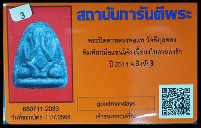 | พระปิดตา เนื้อผงใบลาน ปี2514 หลวงพ่อแพ วัดพิกุลทอง |